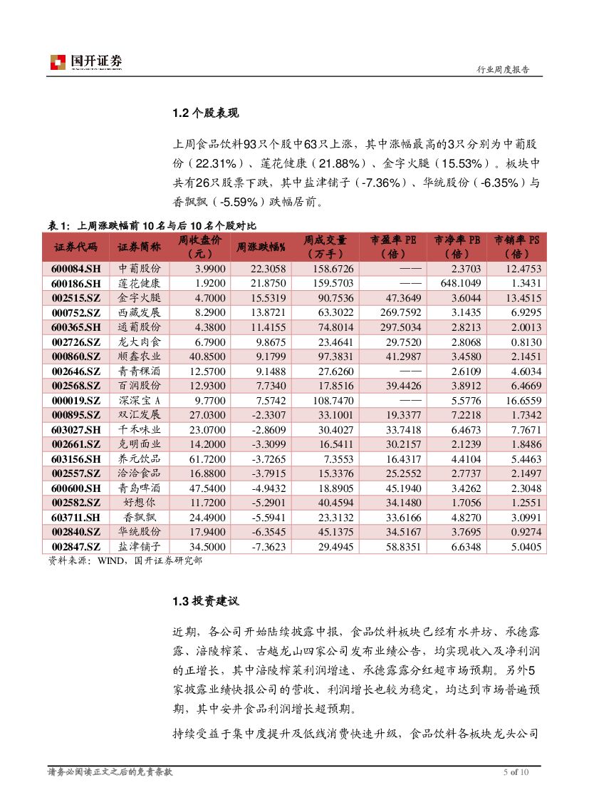 国开证券:食品饮料行业周报:披露业绩公司表现稳定,行业仍具比较优势.pdf