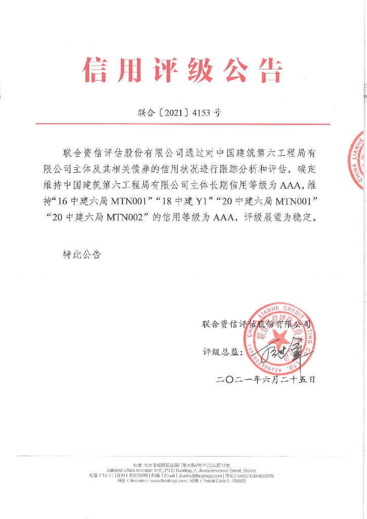 联合资信:中国建筑第六工程局有限公司2021年跟踪信用评级报告.pdf