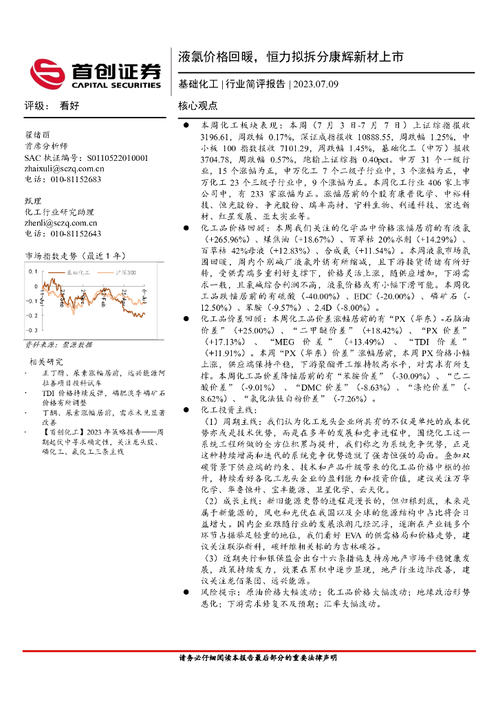 首创证券:基础化工行业简评报告:液氯价格回暖,恒力拟拆分康辉新材上市.pdf