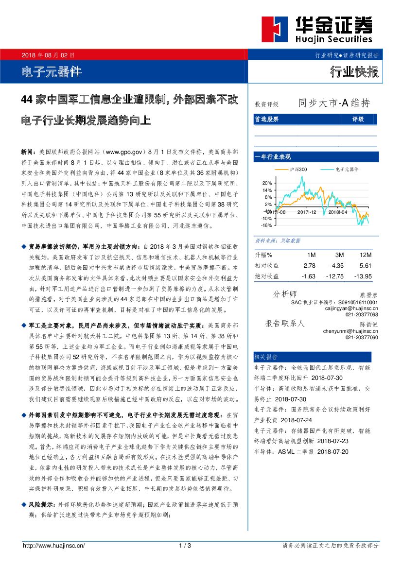 华金证券:电子元器件行业快报:44家中国军工信息企业遭限制,外部因素不改电子行业长期发展趋势向上.pdf