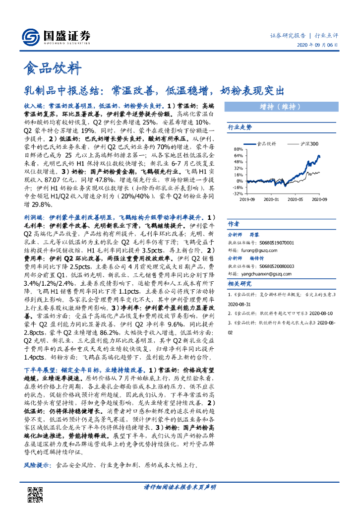 国盛证券:乳制品中报总结:常温改善,低温稳增,奶粉表现突出.pdf