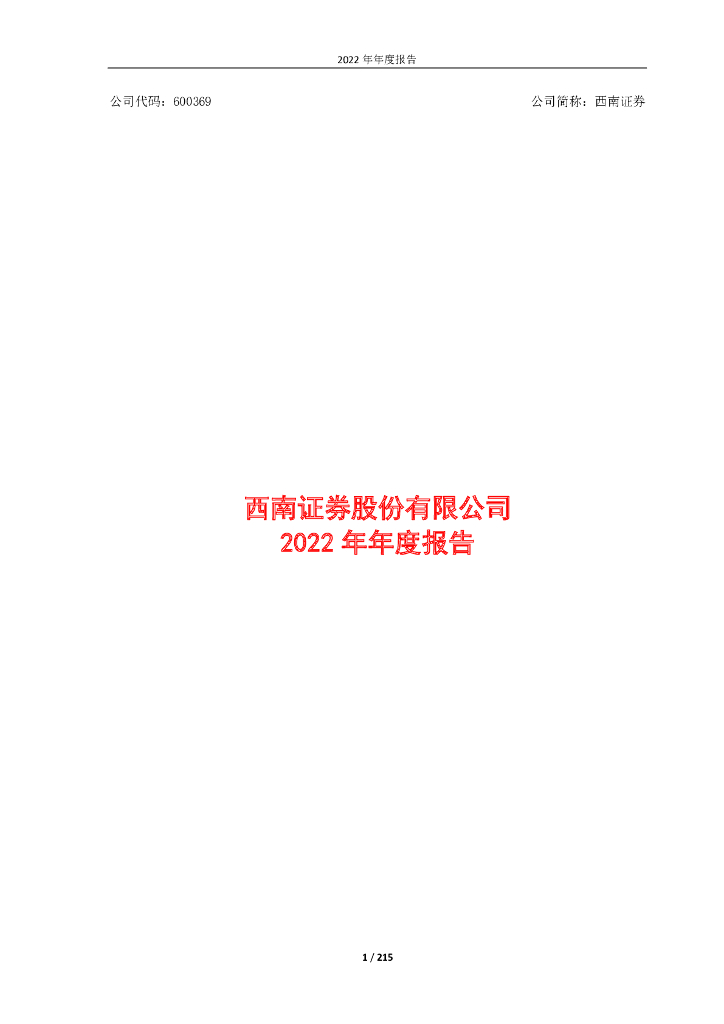 600369-西南证券:西南证券股份有限公司2022年年度报告.pdf