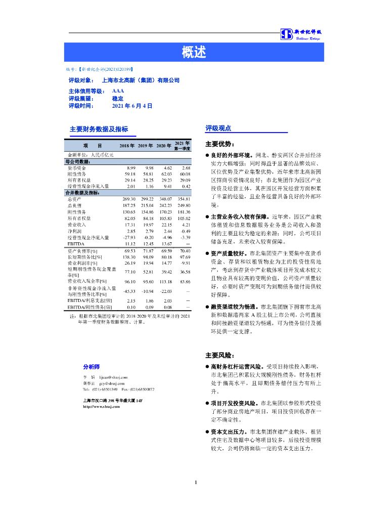 新世纪:上海市北高新(集团)有限公司主体信用评级报告.pdf
