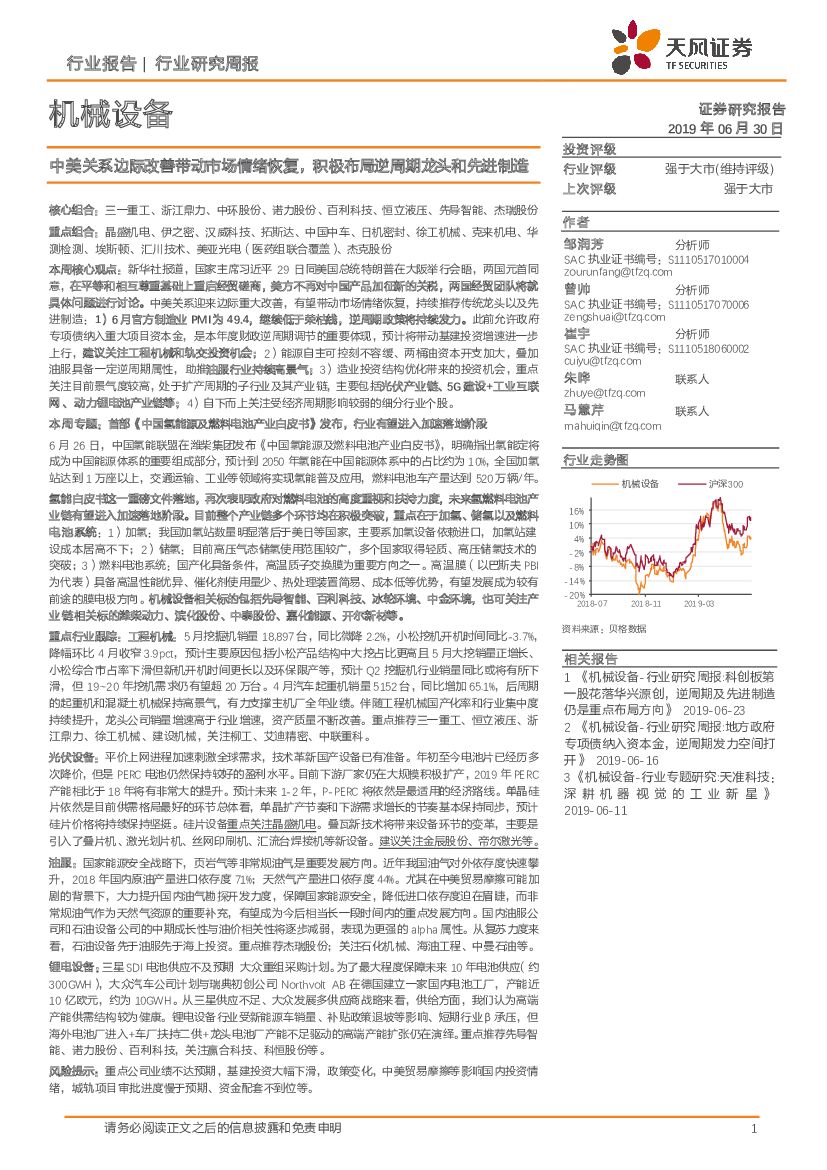 天风证券:机械设备行业研究周报:中美关系边际改善带动市场情绪恢复,积极布局逆周期龙头和先进制造.pdf