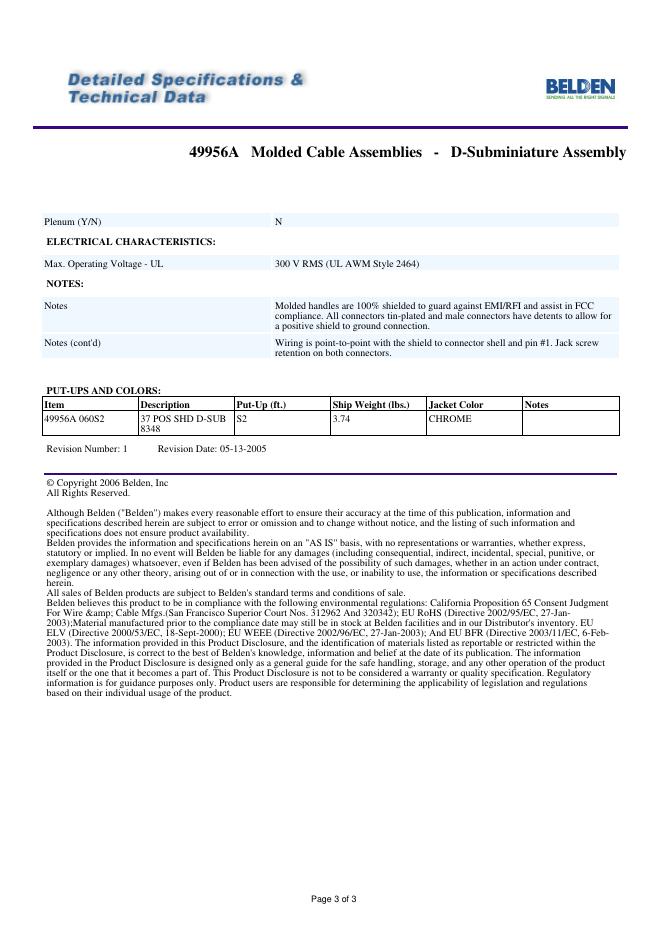 BELDEN 49956A Molded Cable Assemblies - D-Subminiature Assembly 数据手册.pdf
