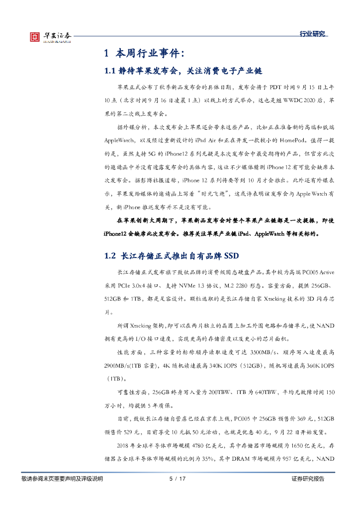 华安证券:电子行业周报:静待苹果发布会,关注消费电子产业链.pdf