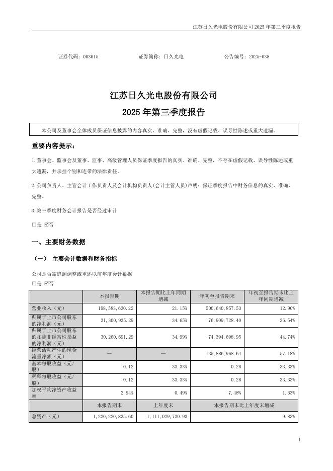 003015-日久光电:2025年三季度报告.pdf