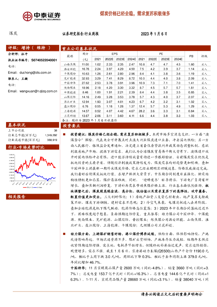 中泰证券:煤炭行业周报:煤炭价格已经企稳,需求复苏积极做多.pdf