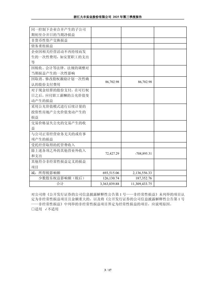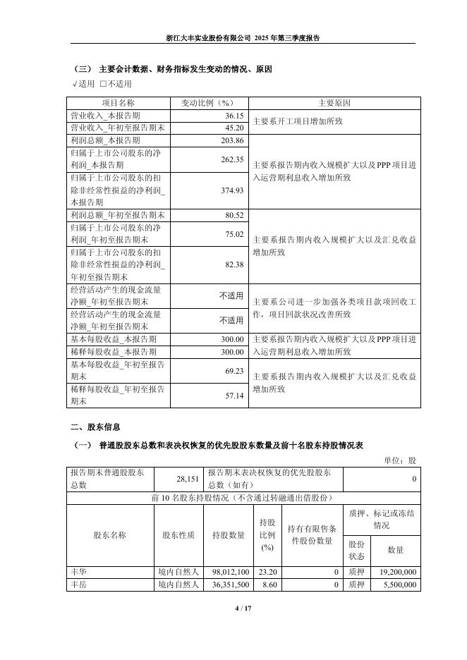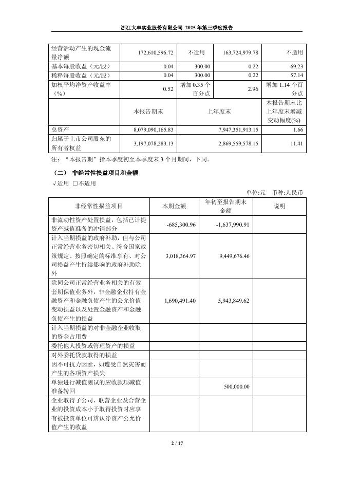 603081-大丰实业:浙江大丰实业股份有限公司2025年第三季度报告.pdf