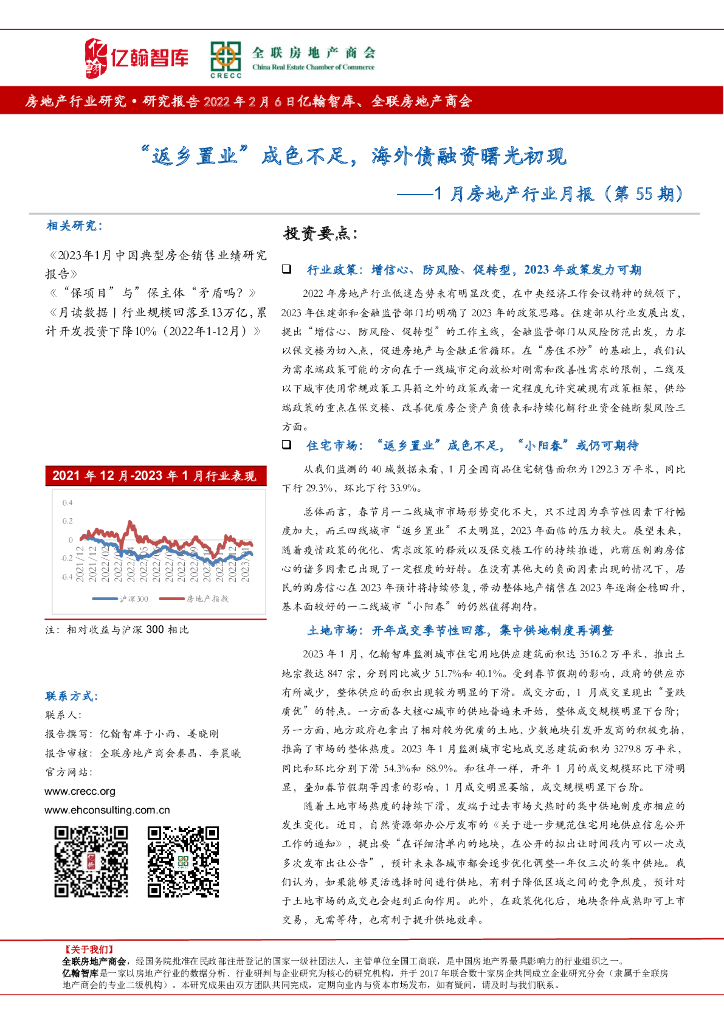 亿翰智库:1月房地产行业月报(第55期):“返乡置业”成色不足,海外债融资曙光初现.pdf