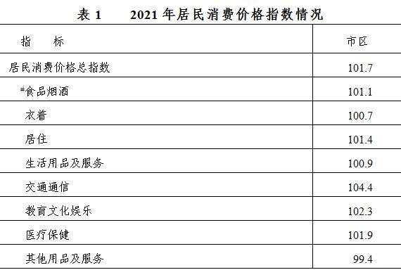 全年市区居民消费价格指数(CPI)上涨1.7%,比上年回落0.6个百分点。其中,服务项目价格上涨1.5%,消费品价格上涨1.8%。工业生产者价格持续走高,全年工业生产者出厂价格指数上涨9.6%,工业生产者购进价格指数上涨14.7%。