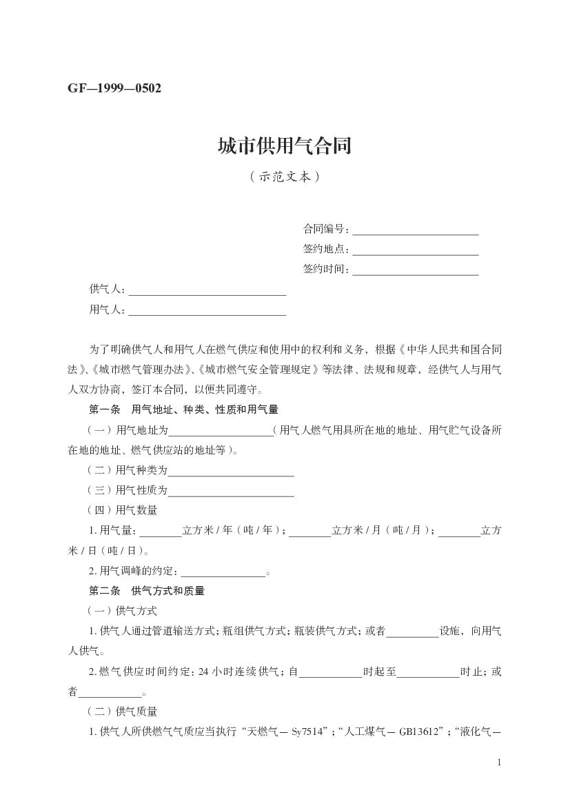 GF-1999-0502 城市供用气合同(示范文本).pdf