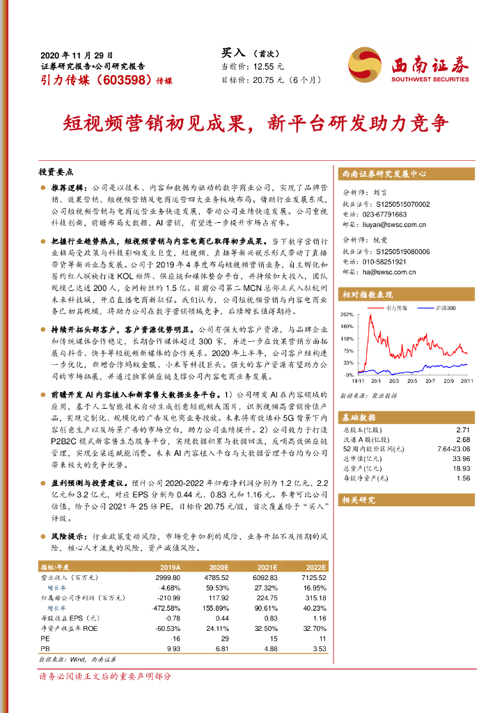 西南证券:引力传媒(603598)-短视频营销初见成果,新平台研发助力竞争.pdf