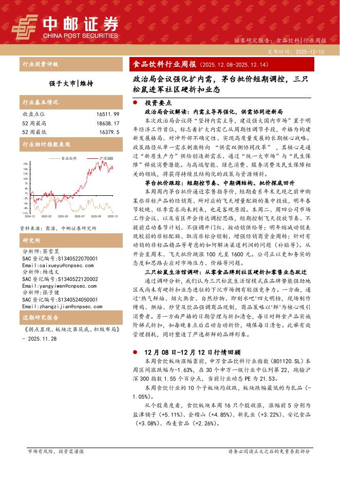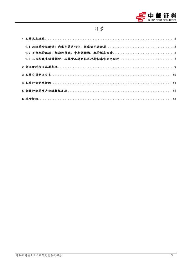 中邮证券:食品饮料行业周报:政治局会议强化扩内需,茅台批价短期调控,三只松鼠进军社区硬折扣业态.pdf