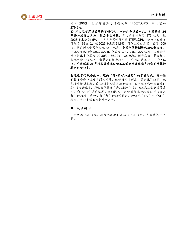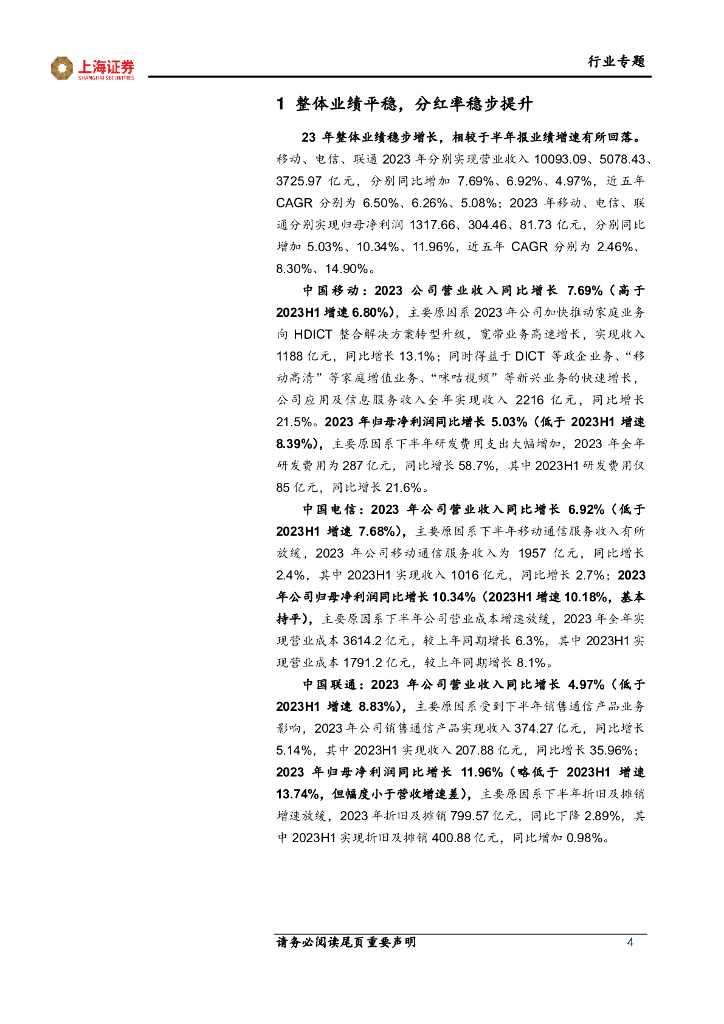 上海证券:三大运营商23年业绩点评:创新驱动深化转型,迈向智能化时代.pdf