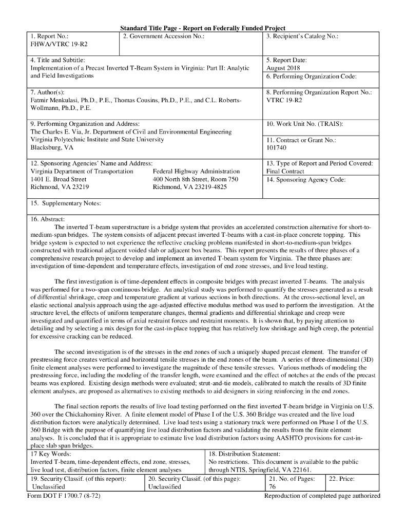 VTTI:2018年弗吉尼亚预制倒T梁系统的实施:第二部分:分析和现场调查报告(英文版).pdf