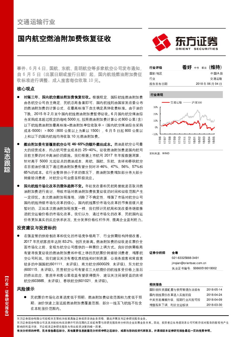 东方证券:交通运输行业:国内航空燃油附加费恢复征收.pdf