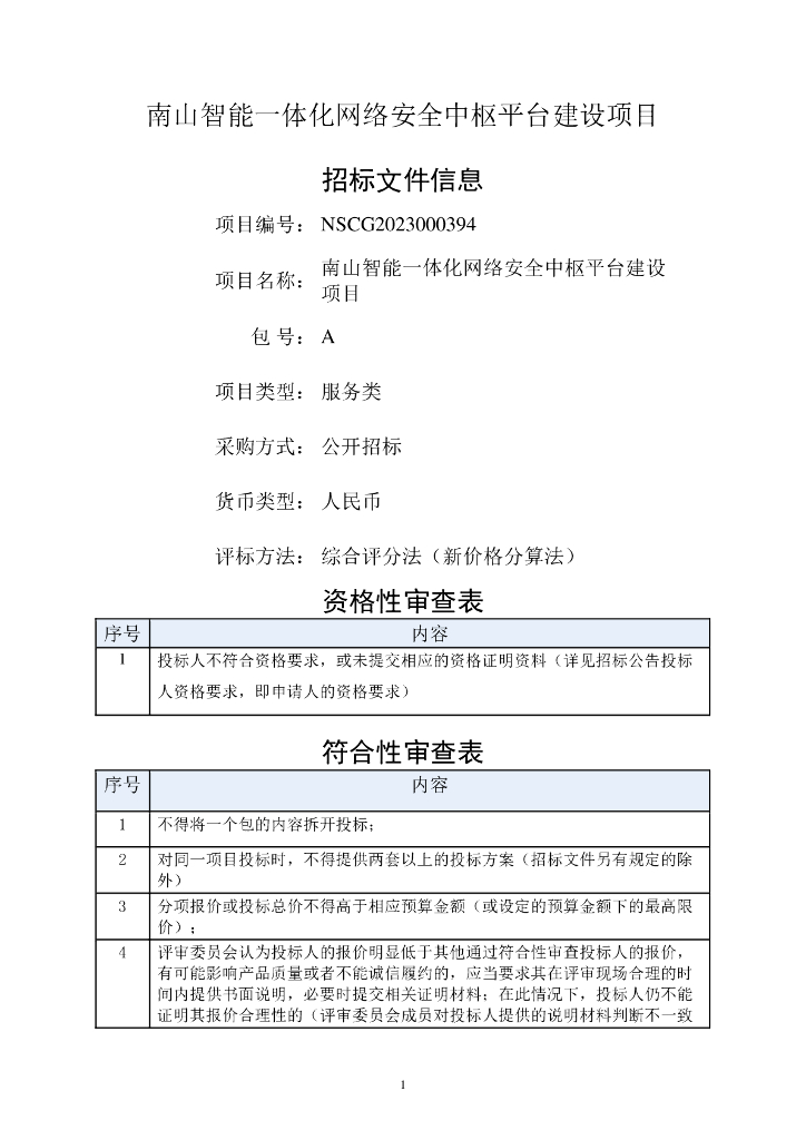 数字安全-深圳南山智能一体化网络安全中枢平台建设项目招标文件.pdf