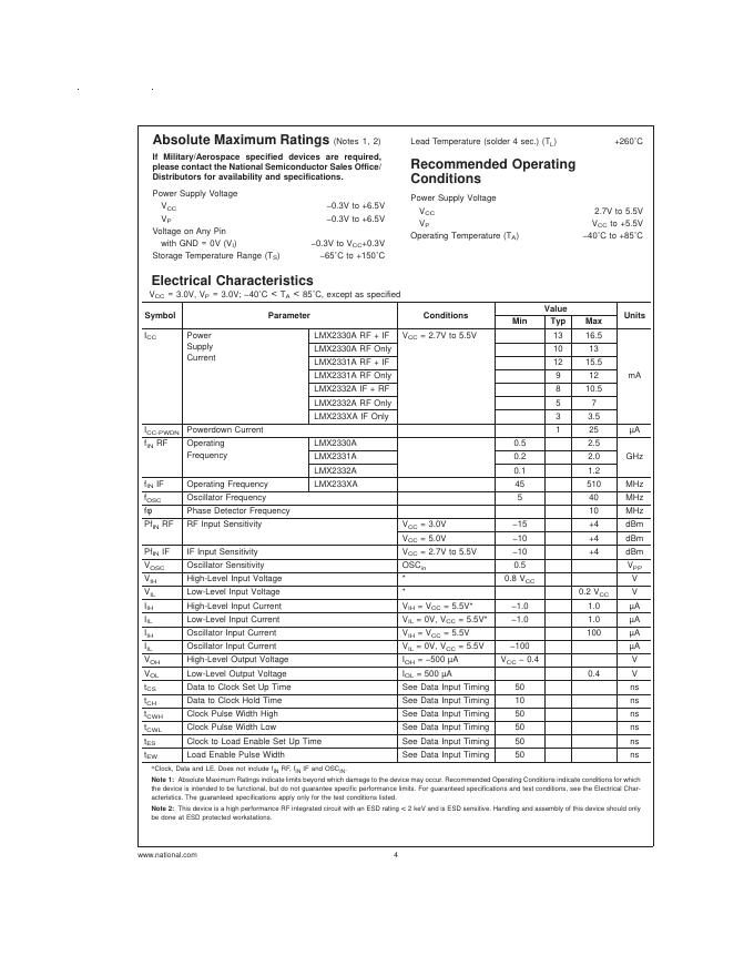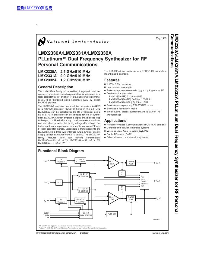 National LMX2330A/LMX2331A/LMX2332A 数据手册.pdf