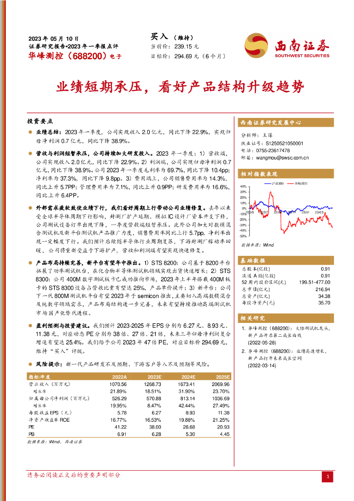 西南证券:华峰测控(688200)-业绩短期承压,看好产品结构升级趋势.pdf