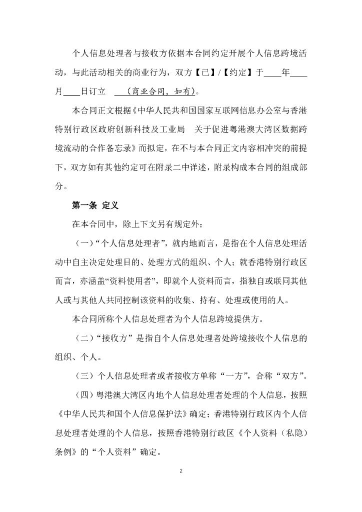 国家互联网信息办公室:粤港澳大湾区(内地、香港)个人信息跨境流动标准合同.pdf
