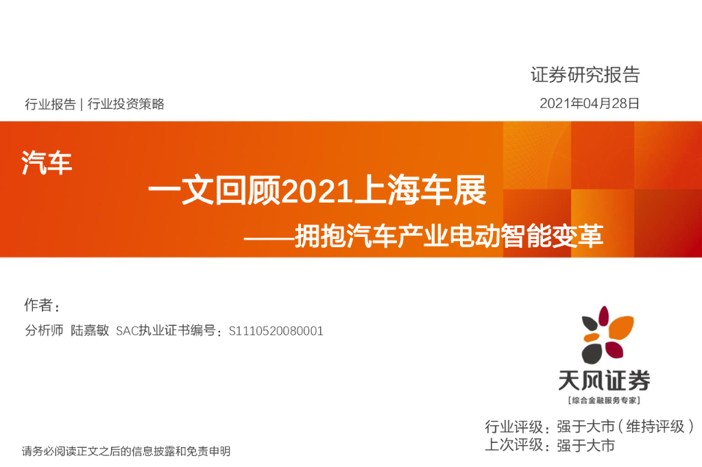 天风证券:汽车行业投资策略:一文回顾2021上海车展-拥抱汽车产业电动智能变革.pdf