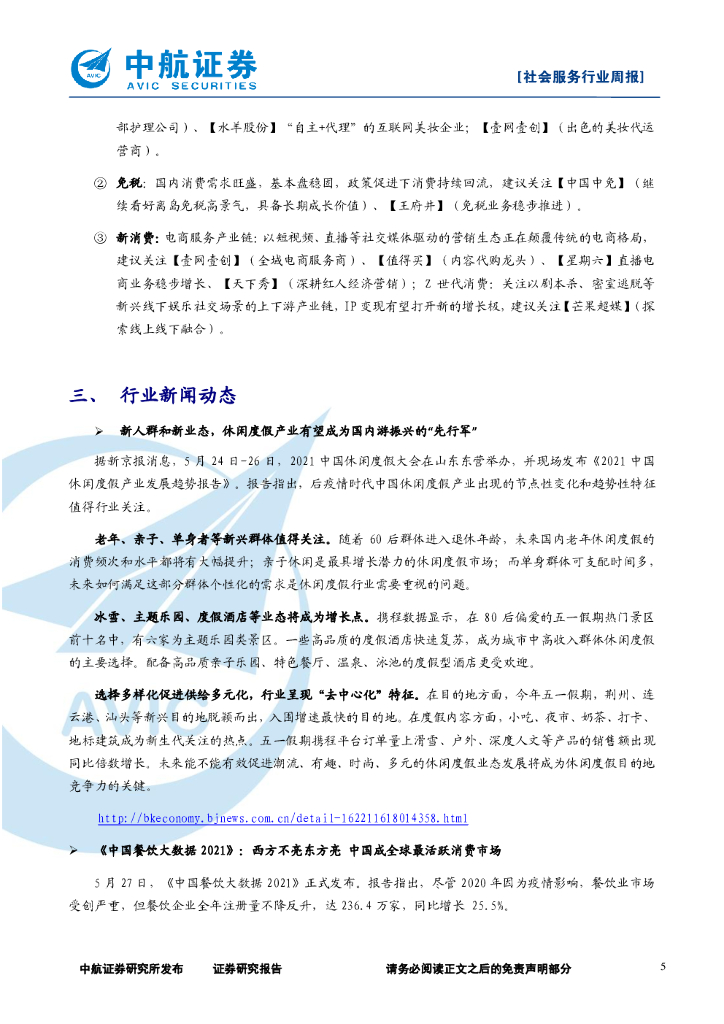 中航证券:社会服务行业周报:新人群和新业态驱动新型休闲旅游,短视频入局“618”促销混战.pdf
