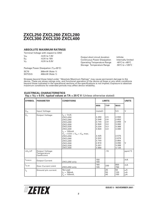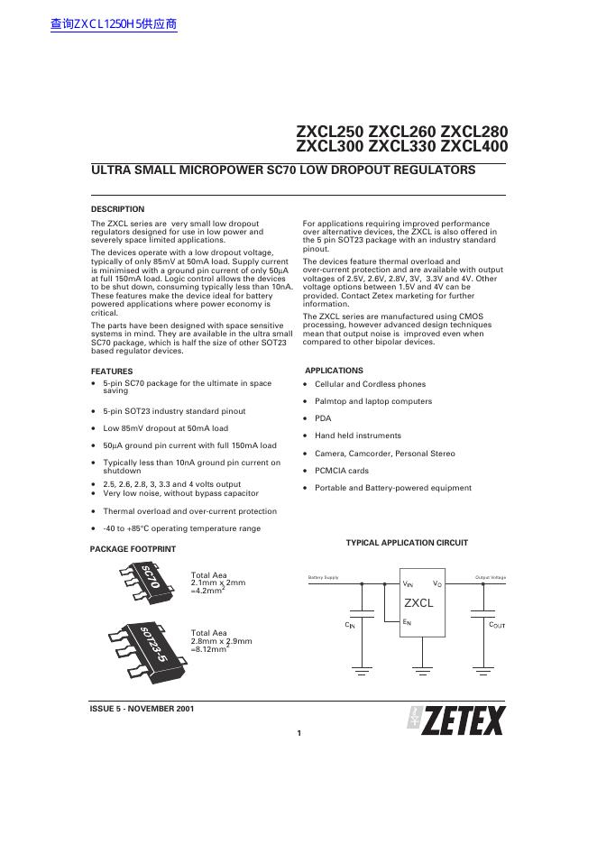 ZETEX ZXCL250/ZXCL260/ZXCL280/ZXCL300/ZXCL330/ZXCL400 数据手册.pdf