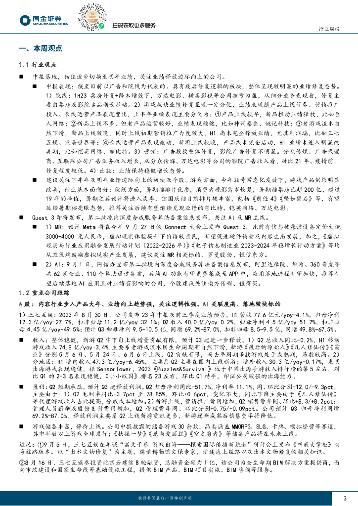 国金证券:传媒互联网产业行业研究:估值逐步切换,关注业绩边际向上标的及AI、MR主线.pdf