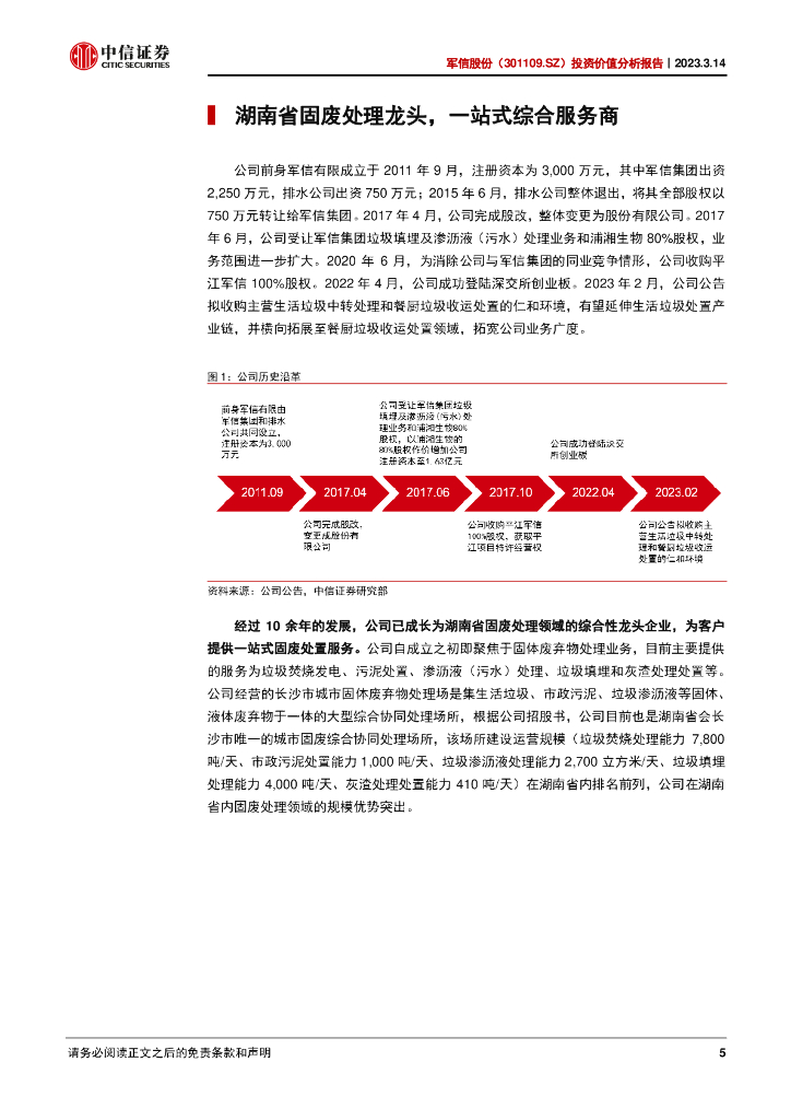 中信证券:军信股份(301109)投资价值分析报告:湖南固废处理龙头,拟收购纵横拓深谋协同.pdf