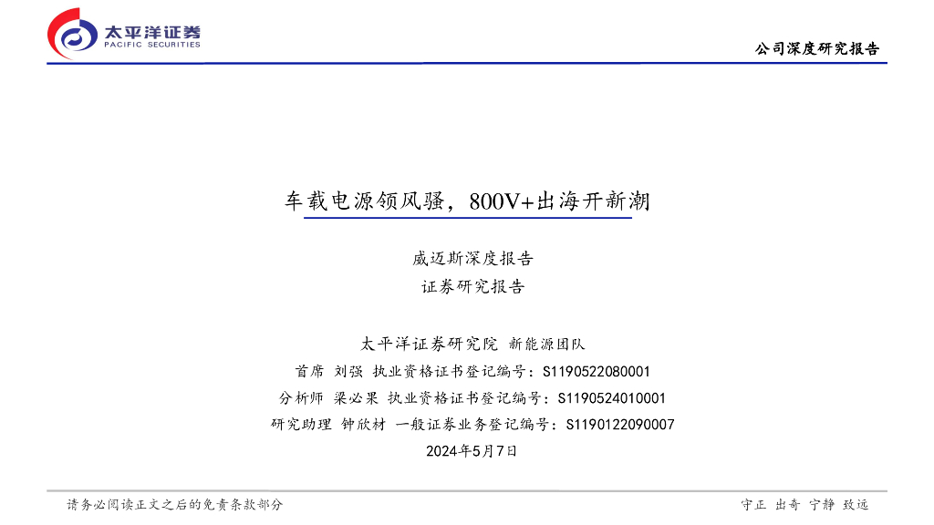 太平洋证券:威迈斯深度报告:车载电源领风骚,800V+出海开新潮.pdf