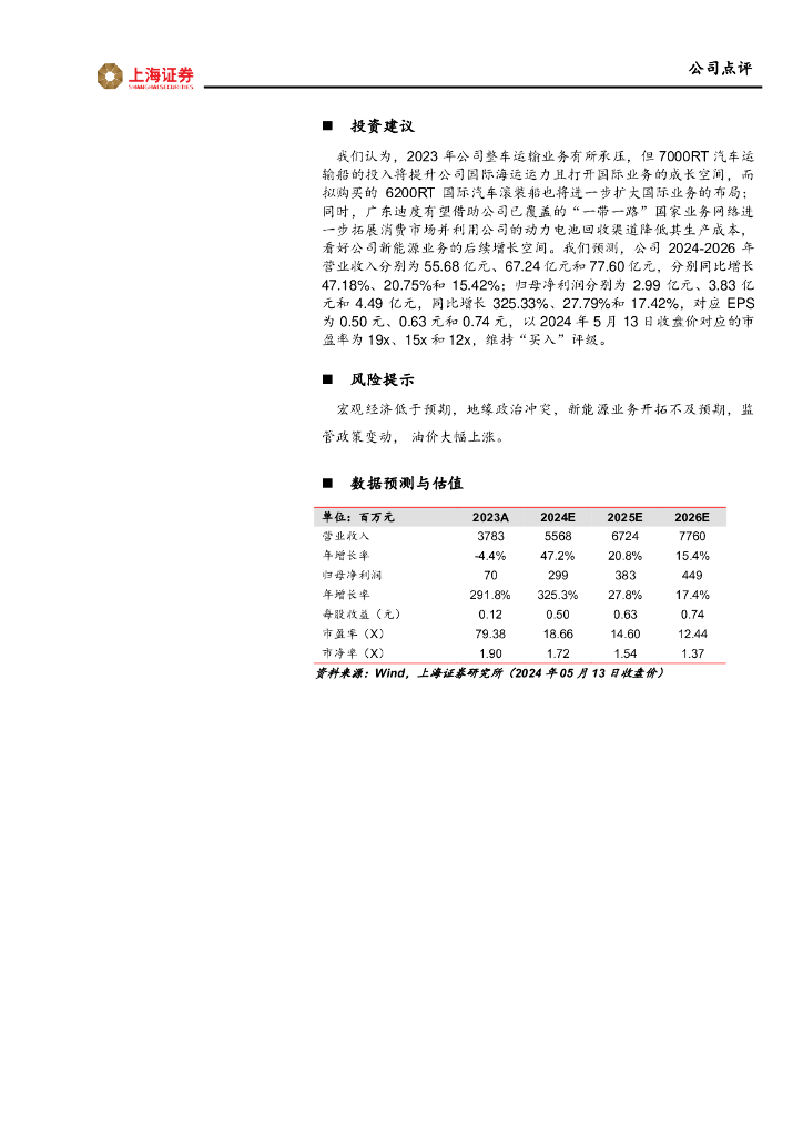 上海证券:长久物流业绩点评:2023年整车运输业务承压,海运运力提升进一步扩大国际业务布局.pdf