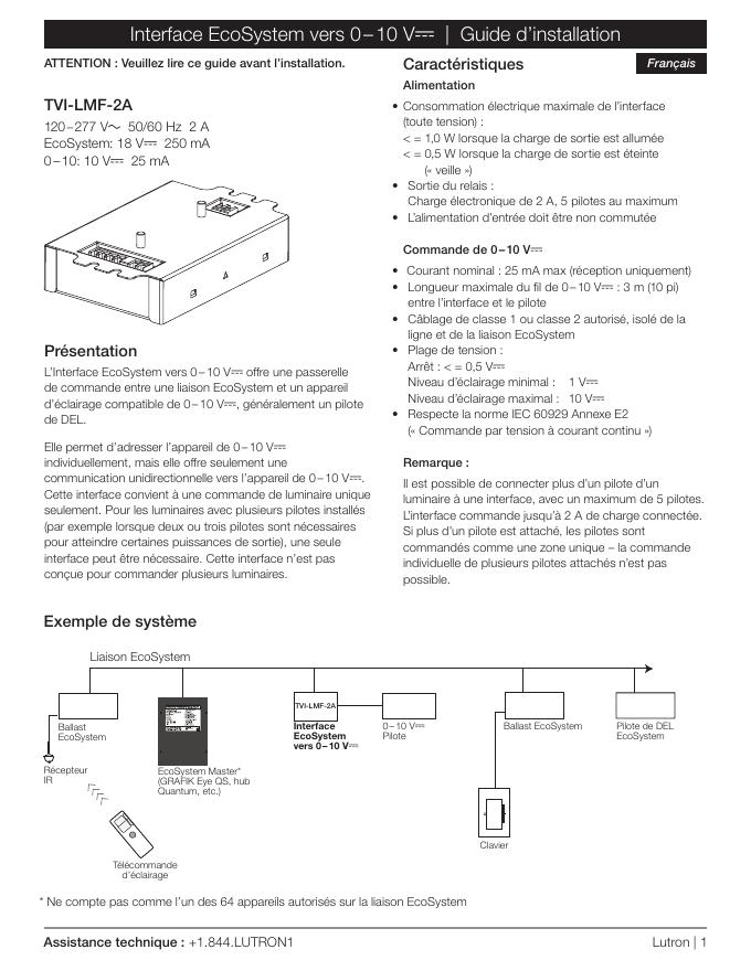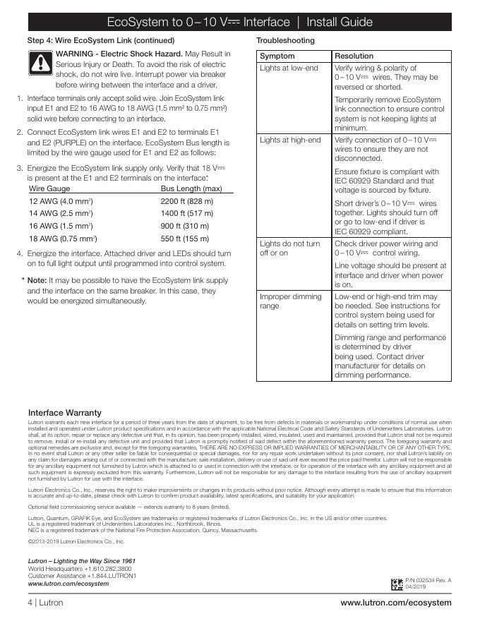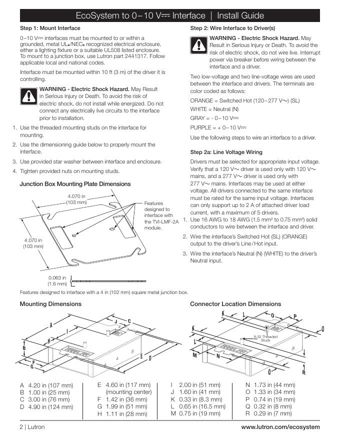 Lutron 生态系统到 0-10 V 接口安装指南.pdf