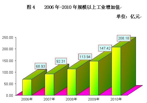 全年全部工业增加值322.79亿元,增长22.9%,规模以上工业增加值208.18亿元,增长31.6%。规模以上工业产品销售率98.11%,比上年提高2.83个百分点。