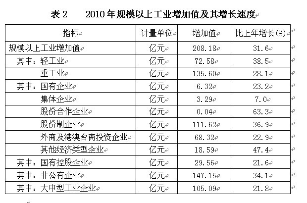 2010年,在市委、政府的正确领导下,全市上下坚持以科学发展观为指导,坚持统筹城乡发展,加快推进城乡一体化,注重经济发展方式转变和经济结构调整,提高经济增长质量和效益,不断加大投资力度,改善民生,保持社会和谐稳定,全市经济保持了又好又快的发展态势,经济增长的速度、质量、效益进一步提高,社会事业全面进步,经济社会发展取得了新成就。