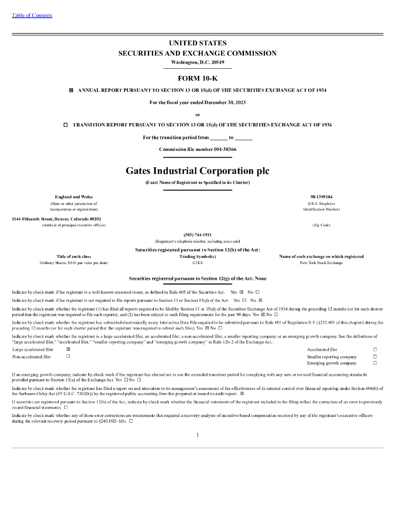 Gates Industrial Corporation plc(GTES)2023财年年度报告(英文版).pdf