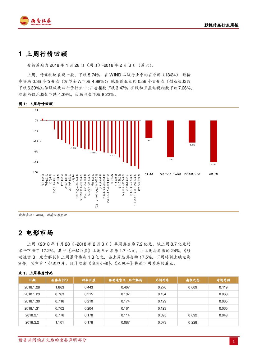 西南证券:影视传媒行业周报:《神秘巨星》票房五连冠,《王牌对王牌》开门大吉.pdf