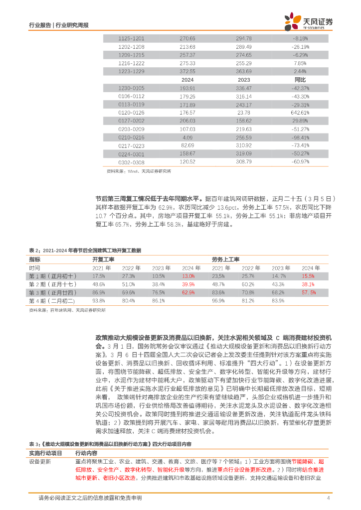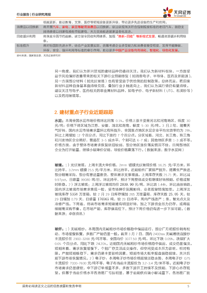 天风证券:建筑材料行业报告:政策推动大规模设备更新及消费品以旧换新,关注水泥相关领域及C端消费建材投资机会.pdf