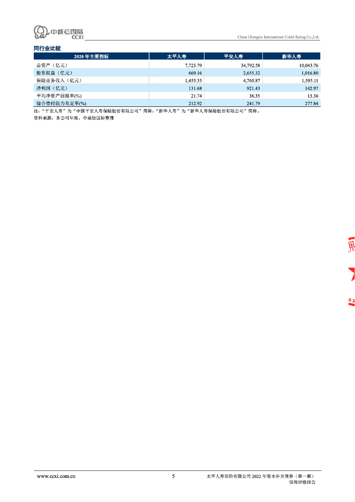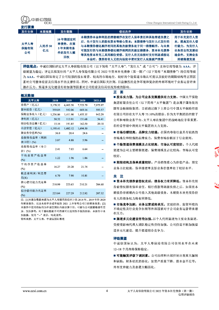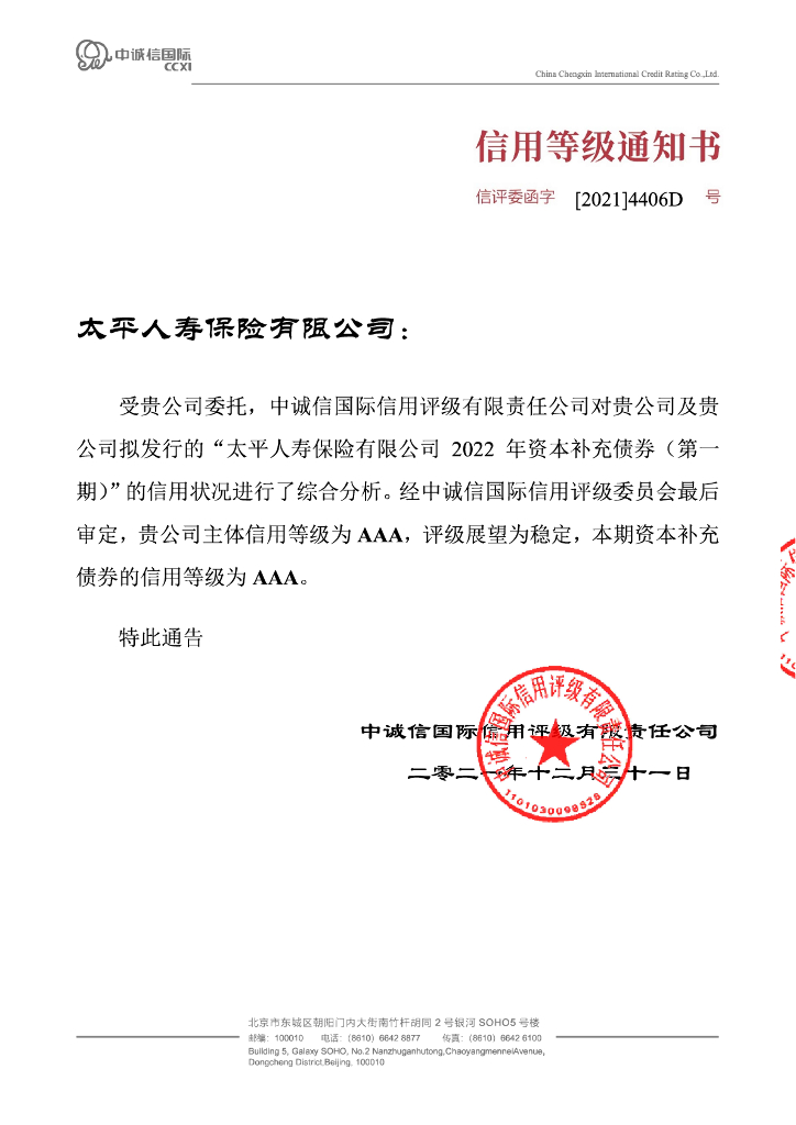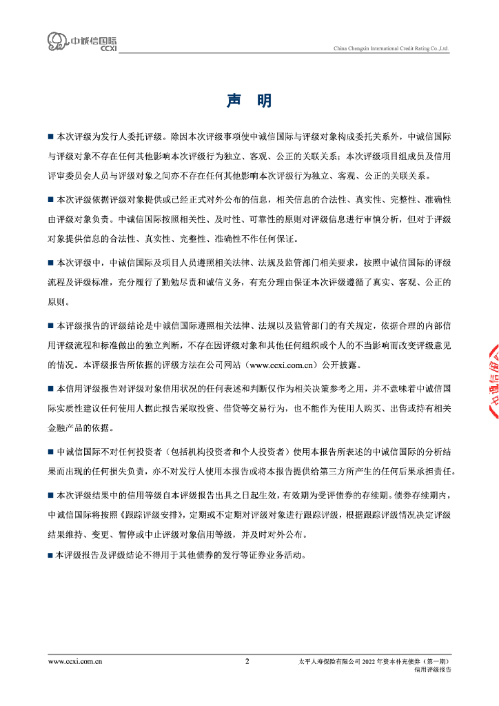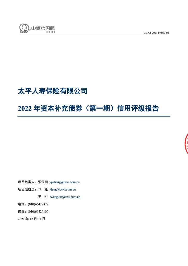 中诚信:太平人寿保险有限公司2022年资本补充债券(第一期)信用评级报告及跟踪评级安排说明.pdf