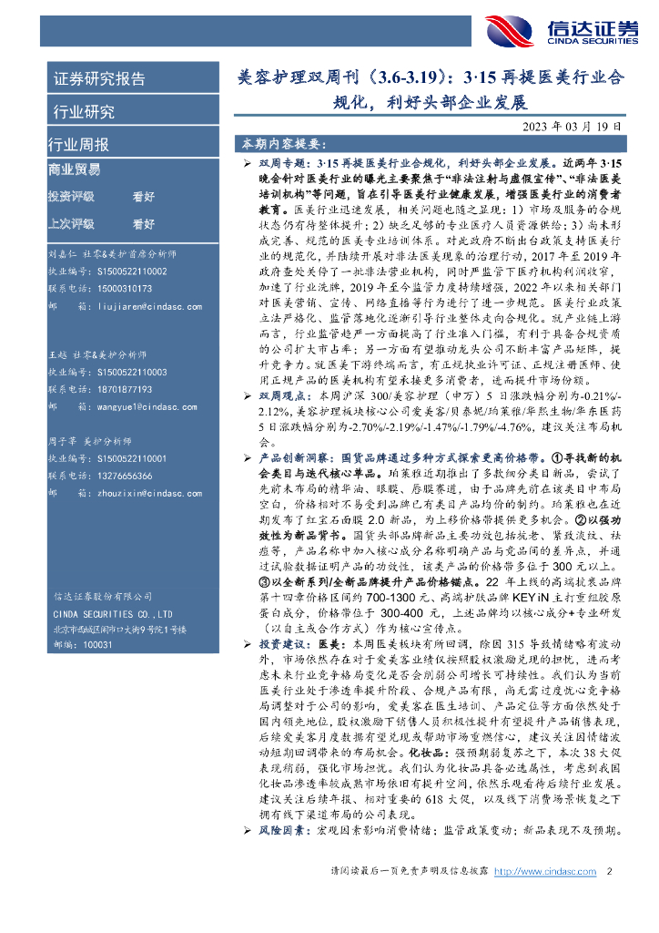 信达证券:美容护理双周刊:3·15再提医美行业合规化,利好头部企业发展.pdf