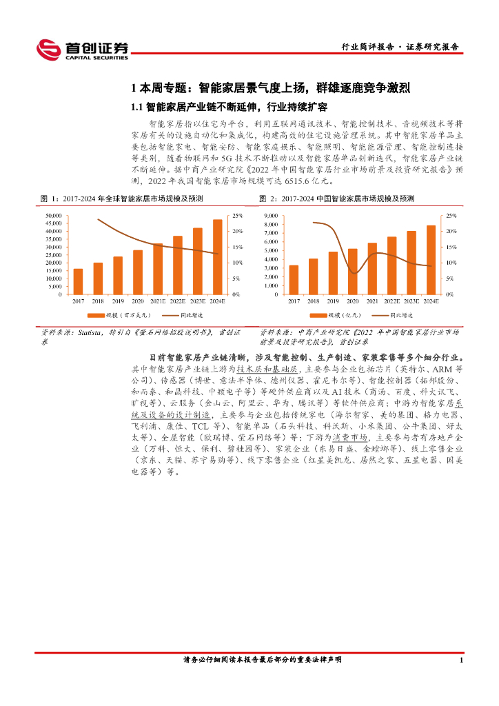 首创证券:轻工制造及纺织服装行业周报:智能家居景气度上扬,群雄逐鹿竞争激烈.pdf
