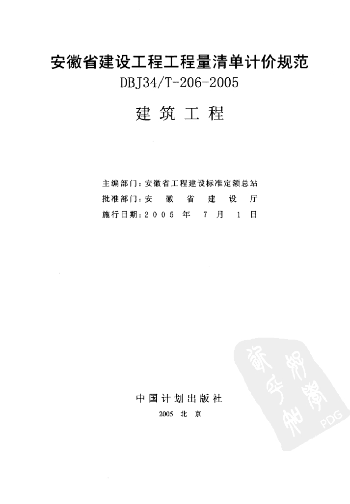安徽省建筑工程工程量清单计价规范——建筑工程DBJ34-206-2005(电子书).pdf