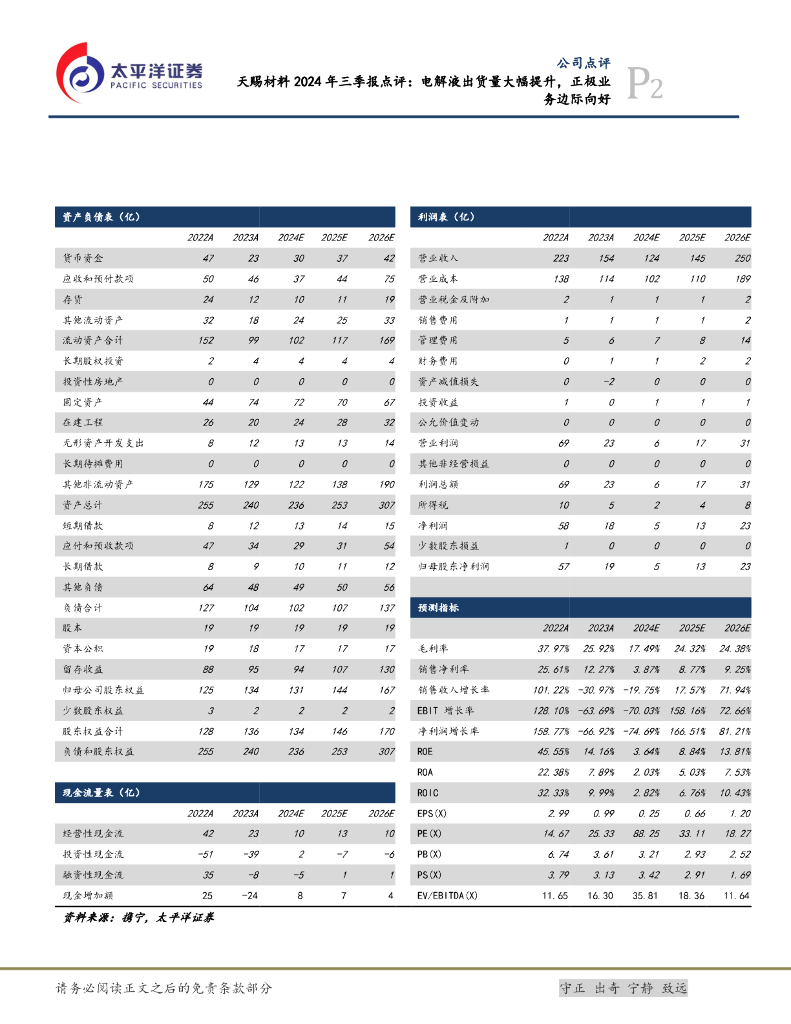 太平洋证券:天赐材料2024年三季报点评:电解液出货量大幅提升,正极业务边际向好.pdf