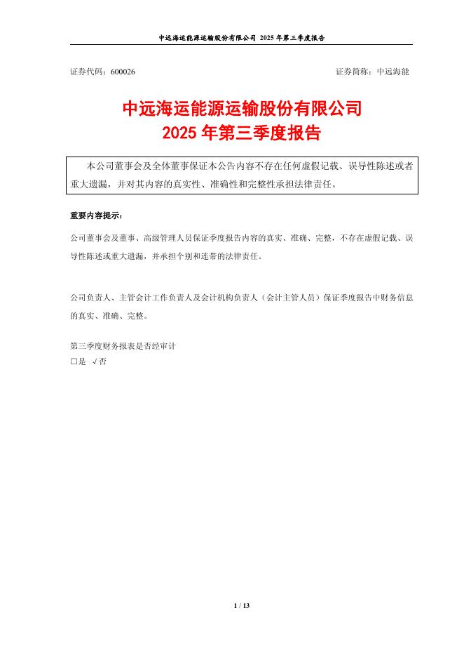 600026-中远海能:中远海能2025年第三季度报告.pdf