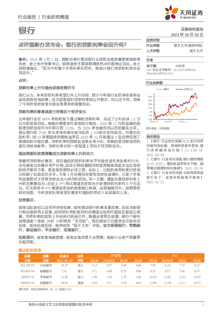 天风证券:银行:点评国新办发布会:银行的贷款利率会回升吗?.pdf