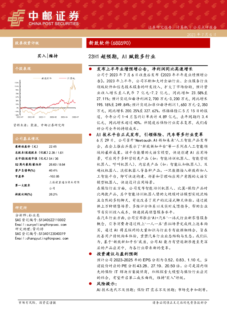 中邮证券:新致软件(688590)-23H1超预期,AI赋能多行业.pdf