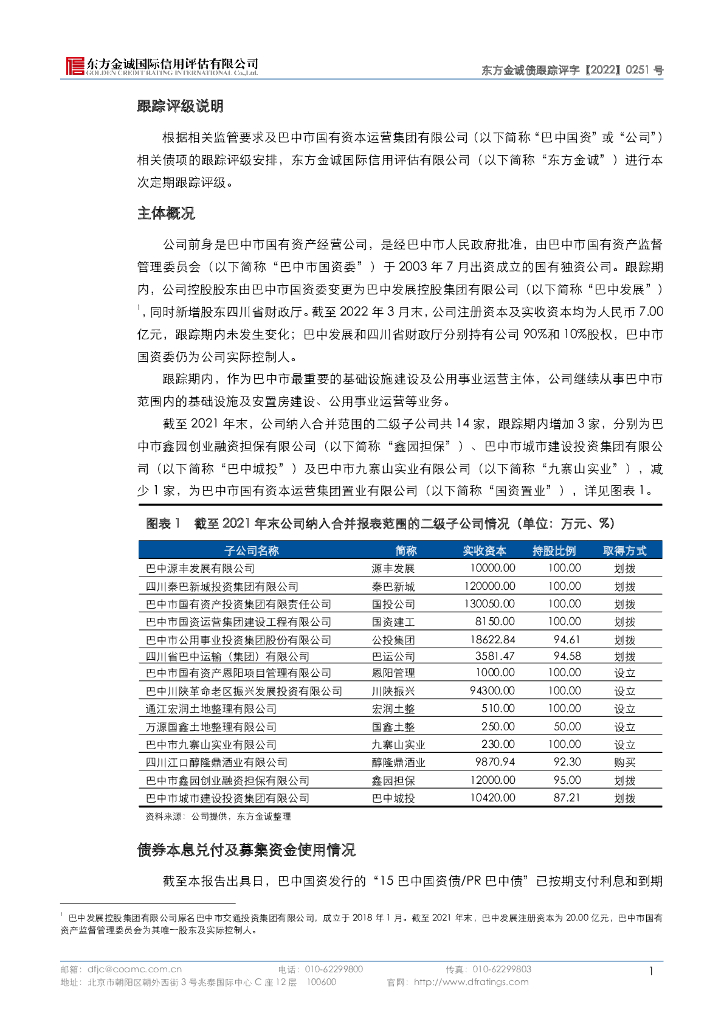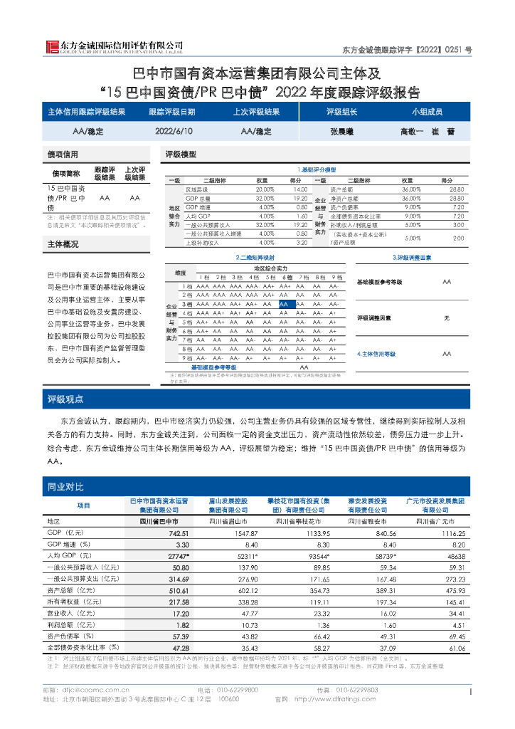 东方金诚:巴中市国有资本运营集团有限公司主体及“15巴中国资债PR巴中债”2022年度跟踪评级报告.pdf