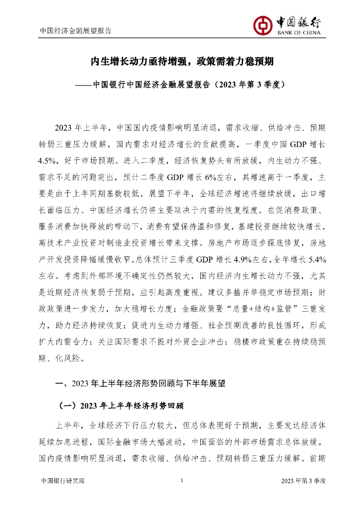 中国银行:2023年第3季度中国经济金融展望报告.pdf