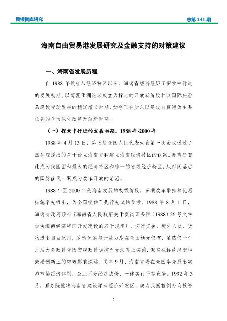 中国民生银行:海南自由贸易港发展研究及金融支持的对策建议.pdf