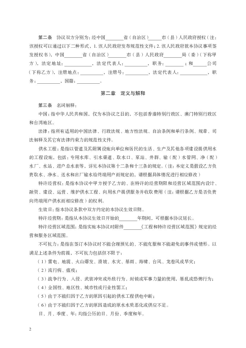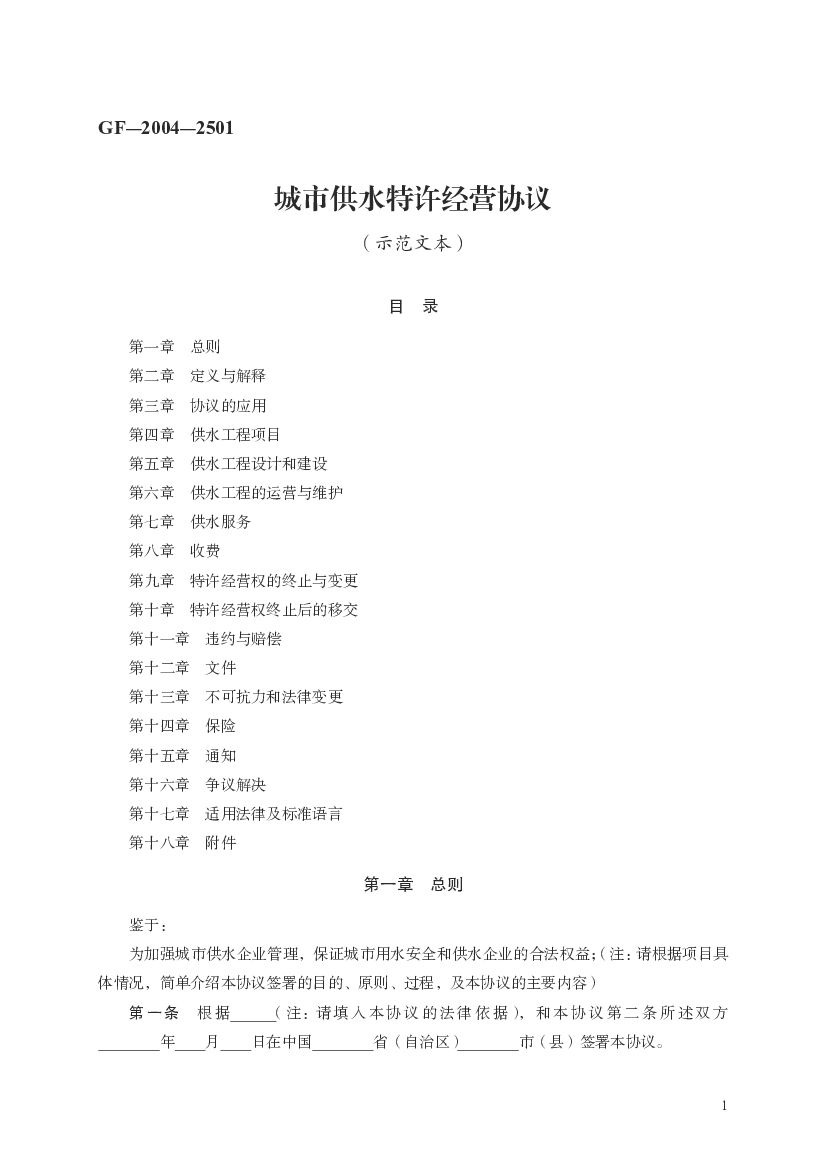 GF-2004-2501 城市供水特许经营协议(示范文本).pdf